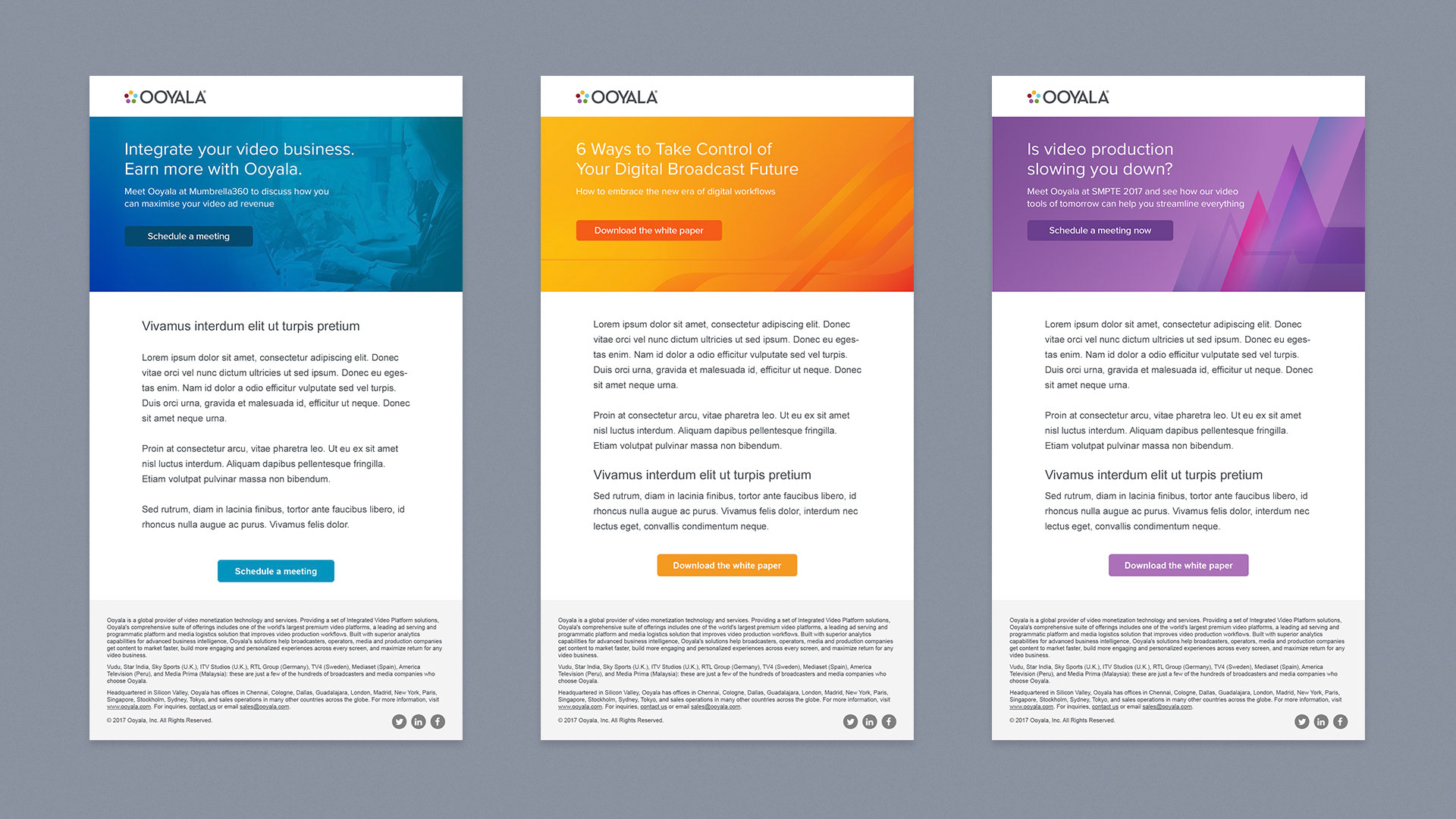 Integrated marketing campaigns for Ooyala, Inc. encompassing email newsletters, display ads and white papers.